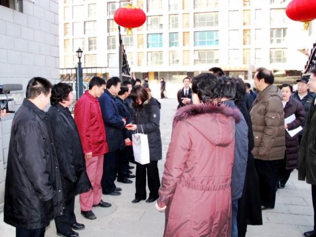 2月12日上午10时30分,建委副主任张农科、北京物协协会会长周星、市住房城乡建设委物业管理处处长于良、北京物业指导中心副主任王颖及九筑物业的李总5位领导冒着严寒前来雍和家园项目慰问在节日期间继续坚守岗位的员工们,并带来节日的祝福,现场还派发了红包。张总向领导们介绍了公司各项目积极组织并开展“十个一”活动的情况,得到了领导们的一致认可。在慰问中张农科副主任鼓励大家说:“给大家拜年!物业就是辛苦行业。过年期间老既然百姓更在乎我们的服务,既然过年大家回不了家,我们要更好地为业主服务好”